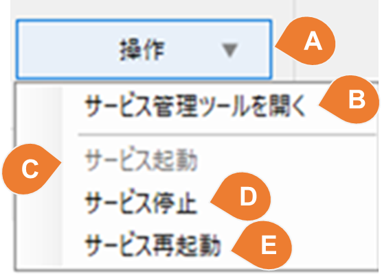 | A | 操作 | サービスに対する各種操作を行うためのメニューを表示します。 |
